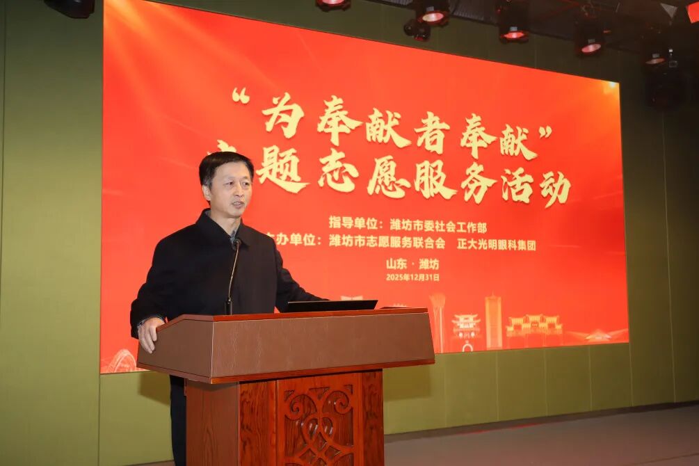 志愿服务暖人心,文明之花绽鸢都。12月31日下午,由潍坊市委社会工作部指导,潍坊市志愿服务联合会与正大光明眼科集团联合主办的“为奉献者奉献”主题志愿服务关爱行动,在潍坊眼科医院三楼学术报告厅温情启幕。活动以“送文化、送健康”为核心主线,向优秀志愿者代表、志愿服务工作者及优秀项目负责人致以崇高敬意与贴心关爱,进一步厚植全市志愿服务氛围,为“更好潍坊”建设注入暖心志愿暖流。